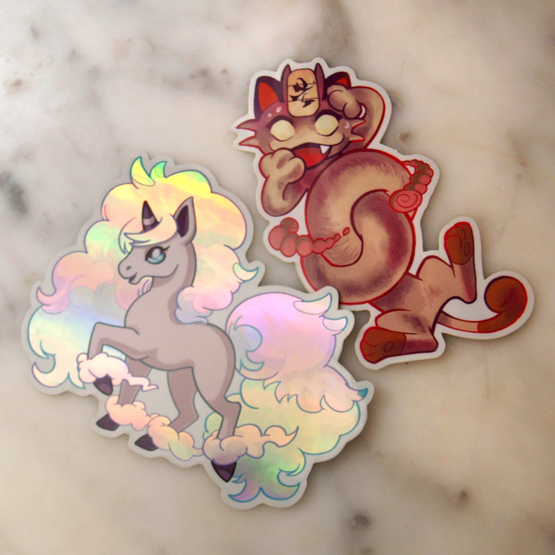 Dimensions: Ponyta - appox 4" x 4" Meowth appox 4" x 2"
